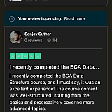 Best Platform for learning programming languages. The step-by-step guidance and use of straightforward language create a seamless learning experience. Projects and quizzes are really helpful in checking our knowledge as well as for placements.
