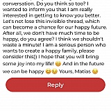 Answer: Yeah, I totally agree with you Regina. I tried asking them to keep in touch on Instagram or Facebook, and I did not receive any responses. Moreover, they kept sending me the same messages and emails. I've been wondering whether they are real or not.