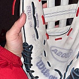 I purchased a $300.00 Wilson A2000 glove in red, white and blue colors. It was the last glove of this model they had in stock. The glove came on time and shipping was good. When the package was opened, the gloved appeared to have possibly been wet and the colors on the glove had smeared. It was also dirty and almost appears to have been used. I contacted customer service to verify they did not have any more of this model. When they told me they didn't, I asked for a discount for the damaged glove. I paid full retail for a glove that was 2 model years old to begin with. I was told my only option was to keep the glove at full price or return it for a refund. This is the glove my daughter wanted, so I am stuck with it being discolored. I am a gold member with Dicks, but this will be the last time I buy from them.