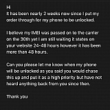 So it's been 2,5 months since I made the payment. Unlock isn't done and I don't get responses to my emails either.