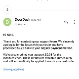 I completely shut down my Door Dash accounts. Granted Door Dash does give a portion of your money back when issues arise. This still does not make up for constantly getting cold, undercooked food and items usually missing. Since this is an on going problem with door dash and basically and delivery companies. IE Grub Hub or Postmates as well it is not worth paying the outrageous service fees and tipping a dasher who flat out does not bother to check to see if the order is complete. I asked a Door Dash driver one time about missing items and I was told, not my problem pal contact the merchant. Well that does not bode well with me after you tip a person in advance like Door Dash requires and that person is too lazy to do their job. Which is to deliver what I ordered, completely. It's worth my time and money saved just driving myself to the place and picking it. I save on an average of $20 to $30 dollars rather than using the over price delivery places.