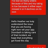 I was a dasher and I work hours without even a break and I had been having problems with the app it was declining orders on it's own and other problems all the time I called them to let them know I didn't want it to affect my ratings and they said it would be fine then suddenly they just fire me because of something I had no control of and I filed an appeal and they still haven't returned my calls or emails i was a great dasher and they didn't appreciate me! I have proof that I was having problems with the app and they have been so rude to me. I didn't deserve this after all the hours I worked and almost lost my life over once I drive safe but its a risk because not everyone drives safely.