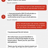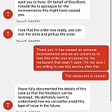 Again, I opened the chat. This time I tell "Tarun R" the problem, they apologize for the inconvenience. Immediately after they say "I see that the order was ready, you can visit the store and pickup the order." I'm sorry but what? Did you not read where I said the restaurant was closed? They state they have fully documented the details so the feedback can be reviewed to better avoid an issue like this in the future. They then proceed to state they issued a refund for the order amount plus extra credits for the hassle. As soon as I questioned the representative of my refund would be immediate, because I had a family to feed and spent our dinner money on a restaurant that wasn't even open, he shut the chat down. Not even offering to maybe give us a free dinner because THEY screwed up and we're left eating peanut butter toast tonight. GREAT customer service there.