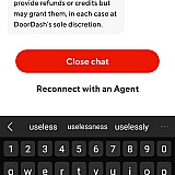 How useless is DoorDash let me show you. I placed an order 1.5 hrs it took to get to me. The order was not edible. I get a slap in the face of, "oh we gave u a lowsy $10 credit you shld be grateful " your as useful as tits on a bull... let alone you raise the concern & oh n what's that your staff don't want to do their job so they end the chats 5 fkn people it took to lodge my complaint. FUKN USELESS