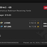 I bet on over 43.5 yards on d. Robinson. Then I went on with my day, checked after game and I lost even though he had 44 yards. Dk changed my bet as it was processing to 44.5. And now they won't fix it. All over $30 dollars. Attached is card I pick my bets from and follow to the T. I have had over ten conversations with draft kings with no solution. What a joke!