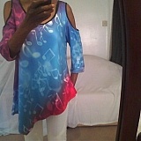 Beautiful rainbow colors with musical print this top makes me feel happy. Wrinkle free. Perfect for spring.