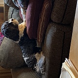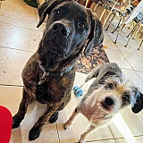 We have a pure breed black shar pei and 6 year old, coon hound (that had been returned 3 times) for his crazines!
