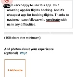 I am very happy to use this app. It's a amazing app for flights booking. And it's cheapest app for booking flights. Thanks to customer care fellows who cordinate with us in any difficulties.