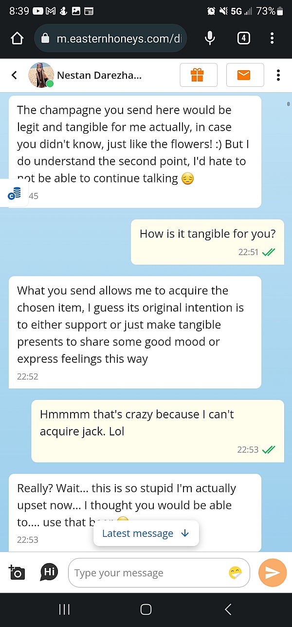 I love the vibe and the slower pace on EasternHoneys, it feels way more real than other platforms. But the mobile vesrion does lag occasionally especially when switching profiles or loading chats. Not a dealbreaker, just hope they smooth that out