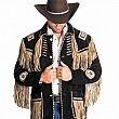 Men Western Indian Leather Jacket Beige, Fringe and Beads