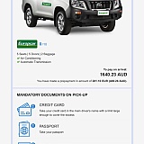 Economy Bookings charged a part payment of $485.28 and delivered nothing. When I collected the rental vehicle I was charged the full price. Europcar had no record of the part payment and stated that they were not affiliated with Economy Bookings. Stay away from Economy Bookings.
