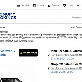 Answer: Economy Booking is based in Europe and is impossible to deal with. I would never use them again. I got my money back (the down payment taken off at the time of booking) by using better Business Bureau and going after the US rental company.