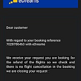 I have been scammed. Our flights were cancelled and airlines informed us that the money was refunded to edreams 7 days later. I have tried to contact them every week since November when it happened. No contact number is available. U can chat to the a robot who gives the same answer that airlines is taking 3 to 6 months to refund. I cannot believe they have not returned 2000 dollars which has extra fees on top of it. We will now go to consumers forum and have asked our bank to dispute the transaction. I will post a review everyday so hopefully they cant do it to anyone else