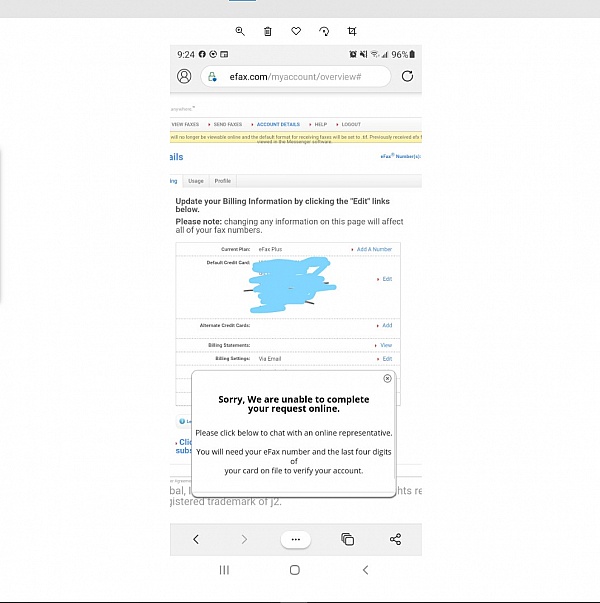 Hello Kimberly. EFax Corporate is our sister company and is separate from our efax.com services. Should you require assistance regarding our consumer service, please feel free to reach out to us at [email protected] and we would be happy to assist^RA