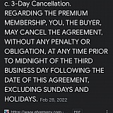 Refund Policy: Regarding the Singles Service, the buyer, may cancel the Agreement, without any penalty or obligation, at any time prior to midnight of the third business day following the date of the Agreement, excluding Sundays and holidays.