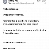 The finance are very reluctant to reply so for a quick response I finally reached this email *******@elitesingles.com