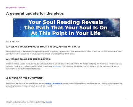 I just want to make it known that people will often use this wiki as a weapon. If they don't like you, they'll threaten to make a page about you here and when somebody does, reporting it to the administrators is pointless because they will do absolutely nothing. Harassment is a very common result of having an article written against you, but in response, the admins and their userbase will just tell you that "ED is not your personal army" even though that is exactly what it's become over the years.