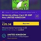 I bought a Nintendo £25 Eshop card which cost me £24.37. The Code I was given did not work on Nintendo's website. I emailed customer services expecting that they would send me another code directly to my email address but unfortunately this did not happen. Instead the refunded the money to my Eneba wallet.