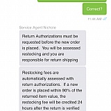 Sent wrong items been trying for a week to return. No phone number for person, on line chat seems to be multitasking and continued to ask same question, also have 3 different responses on restock fee (25%). Was told if replacement was 10% over return cost there would be no charge, after I placed new order they said it had to be pre approved. Same person later said then 90%. Save the headache not worth the savings