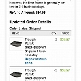 I see other negative reviews but I have never had a bad experience from ereplacementParts and have be buying parts from them for over 5 years. Have always gotten exactly what I ordered in a timely fashion.