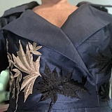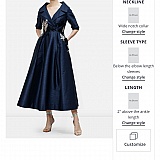 My custom ordered dress fit perfectly with the new neckline, sleeves, and length I chose. When I contacted customer service about alternate fabrics available, they quickly and kindly found two other fabric choices for me. In the end, I chose the original navy fabric. It is a beautiful dress.