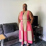 Attached is a photo of me wearing the first, longer dress, at work. I'm a plus-size girl (male-to-female transgendered) so getting a dress to fit well, especially with my shoulders, is almost impossible; with a custom-sewn eShatki dress, it's a snap. And I love the pockets! You don't realize how you miss having pockets until you don't have them.
