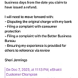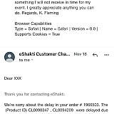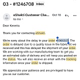 Eshakti responded on 12-12-2023 that my order had been cancelled and a refund would be issued.