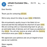 In reading other customer posts, this seems to be eshakti.com's standard canned response.