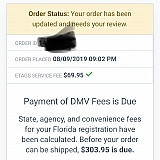 Hi Seven, we see from your screenshot that you placed an order to obtain a new registration and tag meant for vehicles that do not have Florida plates yet. You did not place an order to renew an existing registration. Our new registration process requires that we obtain copies of your IDs and other documents and then we can determine DMV fees due to issue a new Florida plate. The $69.95 is the service we charge to process a new plate transaction charged at the time the order is placed and the DMV fee, once confirmed, is collected in a second payment. We complete Florida tag *renewals* via a different service and can process these quickly with all fees collected upfront in one payment. We are sorry to hear that you were confused about the two different services. We hope that clarification helps. If you have any other questions, please do not hesitate to contact us directly.