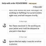 I purchased a jacket that was supposed to be a men's medium and it arrived a woman's medium... several emails to the seller and a opened and closed claim case in less than 6 hours and I'm stuck with the jacket. The only response to my several emails was apparently meant for another customer.