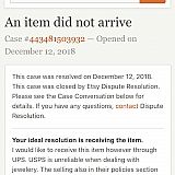 I wish I reviewed this company before shopping, I wouldn't be here leaving my own review of how negatively I was treated. I opened a non-delivery case with them concerning a necklace I purchased from one of the shops (gorgeous) selling on their site. I was never contacted/emailed about the case I opened. They just closed it. Ultimately I lost money but it's a lesson learned. If ur interest is obtaining items which promotes ur positive energy shop elsewhere not at ETSY. If they tolerate shops like gorgeous then those items are not coming from a spiritually positive place. This was a Kyanite stone yellow gold necklace for my wife and it wasn't valuable enough to have it shipped UPS requiring a signature. DELETE THE ETSY APP FROM YOUR DEVICES. I pray this helps someone from making the same mistake as I did.