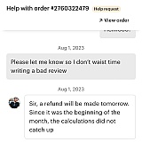 As you can see on the screenshot. They say they will reimburse me but never did (after 3 month telling me they will).