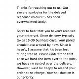 Thanks for the fast delivery even during this time of quarantine (in some areas at least). I would have understood if it was delayed by a day or two but my ordered arrived just in time.