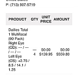 When you return the contacts do to wrong prescription they charge you over $559.80!00 for shipping fee! Rip off!