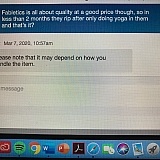 After less than 2 months of owning a pair of Fabletics leggings for strictly yoga, they tore at the seam creating a hole and run up the back. I only wash the leggings and allow them to air dry to avoid unnecessary wear and tear. When I contacted customer service, they blamed me! For a company all about quality at a good price I am shocked at their response.