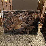 Also - it fell about 3 feet. That short fall caused the frame to be bent and the canvas to be stretched to where it now looks pretty bad.