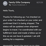 Also damage was the delivery company not Familygifts
