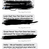 Terrible experience from a customer service standpoint. Ordered my products on 8/03/2023 and was told it would take 3-7 business days, but was not the case. Was told 10 business days later that the items were indeed out of stock, ever though that was not disclosed on the website. These items still show to be in stock as well. Very misleading and dishonest from a customer experience standpoint. Will not be ordering from Fanatics in the future.