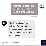 I purchased a $150 egift and they sent it to some random email address. So the recipient NEVER received it and they won't issue me a refund as requested.