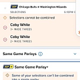 4 hours ago my my 23 leg parlay failed because Rudy Gobert was placed on my single parlay twice for the same task with different amounts. 6 Rebounds and 8 Rebounds. That is a conflict. However it was on my ticket. He made 7 Rebounds. He made the 6 but not the 8. It is a conflict. I would have never bet him to go over the 6 Rebounds. If I had wanted to do that I would have made a different bet and put him over the 6 Rebounds. Anyway challenge anyone to try to bet the same player on the same parlay twice for the same task at different amounts. The system will not allow it however it happened on my mine. I am really done with fanduel. I have attached a screen shot. Look at Rudy gobert and you will see him twice for the same task at different levels. The other pick is what happens when tring to put the same player on same task at different levels and the system will not allow it.