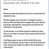 I have checked the refund, there is something wrong with our financial account, we just fixed it. But we lost all the refund record and need to resubmit the refund request to our financial department. And the colleagues in the financial department are arranging the refund for the customers one by one. We are really sorry for this again and we will refund you within 7--10 days. And we will send you an e-mail once being completed."