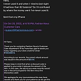 After reading the reviews I gave fashion Nova a chance. I realized that I am experiencing the same issues a lot of the other customers have. Poor customer service, not being able to speak with a live person. I placed order on Nov 1 2022 I have not received it as of today it's been almost a month. My advice do not spend your money with this company. It"s other companies that will value you as a customer. Still waiting on my issue to be resolved after this is over I will never do anymore business with them.