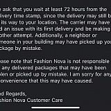 For all the years I have been buying at Fashion Nova, I have never had an delivery issue until August 30,2022, when it said my package had delivered, but yet nothing to show. I have a camera on my front door. It shows no one drop off any package much less to be stolen. I am so disappointed I reach out to fashion nova and they write me back to let me know I should go check with my neighbors and report it to the local police station. They didn't even care to re- send the items they just took my money and was satisfied with what they are doing but they took the wrong person money cause I am not letting it go. I am afraid to order anything else from them because they took your money then say your package delivered and no trust came from it. That is why these carrier services that they are using constantly stealing the packages and Mark delivered because these shipping Companies are holding them accountable for these stuff.