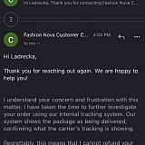 Not to mention I put my order in on a Tuesday and I'm being told Monday for my delivery and I chose express shipping not to mention the countless times I have tagged your company in my photos and Hauls. If you place an order Tuesday how is the delivery date Monday when it's express shipping that's 6 days not three or four do not order from Fashion Nova if you are in an emergency and need an outfit
