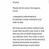Answer: Same... placed 2 orders for my vacation. The 25th and 30th of Nov. Needed the dress for my birthday weekend away. I got one dress when I came back and the other one is being delivered today. Just terrible. Bad customer service. Can't reach nobody by phone. All emails I recieved were automatic responses. Not personalized at all