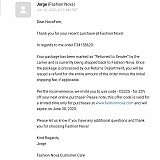 I was scammed by fashion nova. I placed an order they took my money. I didnt receive any type of confirmation email. When I emailed them apparently my ordered was being returned lol which is a joke because it was never sent out. Now they are giving me the run around for me to get my money back. With all that's happening in the world and they do this stealing from people. It's not right. I will walk completely naked before I ever order or recommend this company to anyone! I've attached the email sent from them which is the only email I've gotten since my order was placed. Smh