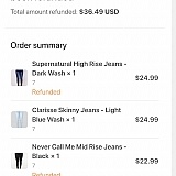 I ordered some jeans online and they came with a broken zipper. I tried to return them and it said it was a final sale and I could t return them. I contacted customer support about the issue and it said to give them 24-48 hours to respond. That time period has passed and they have yet to reply to my concern even though they delivered a faulty product. Their sizes are inconsistent so it's nearly impossible to figure out what sizes will fit you and then they charge you $8 in shipping to return the items when they aren't even made in accordance to their own sizing charts. I used to love this company. I have been a loyal customer for years but their customer service is the worst and they have lost me as a customer because I no longer trust them. I wish I had read their reviews before purchasing from them. I do not suggest purchasing with them.
