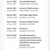 Sunday 04/25/2021 I receive a notice that a package was delivered to my door.