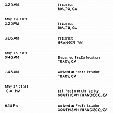 I clicked 1 star because that's the lowest choice on this site. I live in Boston and ordered a food item from a company in California. It took FedEx only 2 days to move it from California to Connecticut. It has then sat in Connecticut for 5 days! Their customer service is just as bad. No matter what I tried, I couldn't get a person on the line. OK, I know that's tough during these days of covid-19 - BUT - their automated systems are also horrendous. Just this morning I tried to get a reliable update since their site said "Scheduled Delivery TODAY" but I could see the package was still in Connecticut and NOT at the local FedEx distribution center. I still got the "automated / computer answer" that the package would be delivered today. Just now I checked the site again - lo and behold, they moved the package 39 miles north from one site in Connecticut to another, and now it says "Scheduled Delivery May 2nd" (tomorrow).