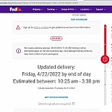 2 shipments, in 2 weeks, delayed 48 hours each time by FedEX. Then FedEx driver lied about a delivery attempt on the 2nd package, moved the package from one facility to another in the wrong direction. FedEx must think we can sit around for 3 days waiting on them to get their $#*! together.